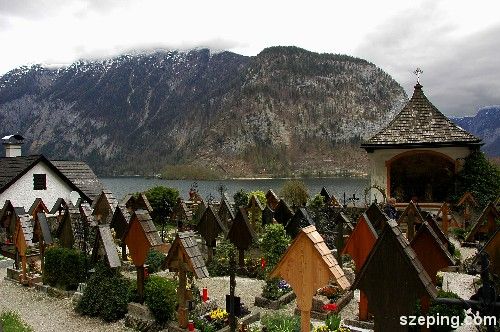 上图的是墓地。而基于土地有限,Hallstatt 居民本着几百年来的独特墓葬风俗 – 把埋葬了十年的亡者遗体挖出来,再把大腿骨与头盖骨留下(剩余火葬)并交由艺术家写上死者名字、生卒年份,还会用些图案来点缀此头盖骨。接着,他们就会把该头盖骨安置在 Beinhaus 内。说真的,那样子的善后方式还算是有点美丽、浪漫的色彩。就是,当某人安躺在墓地内时。。。对着他/她的是自己熟悉的山、湖;而十年后则将重见天日,与故友们同处一室。