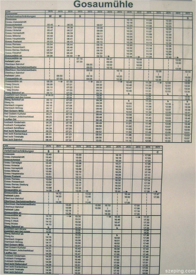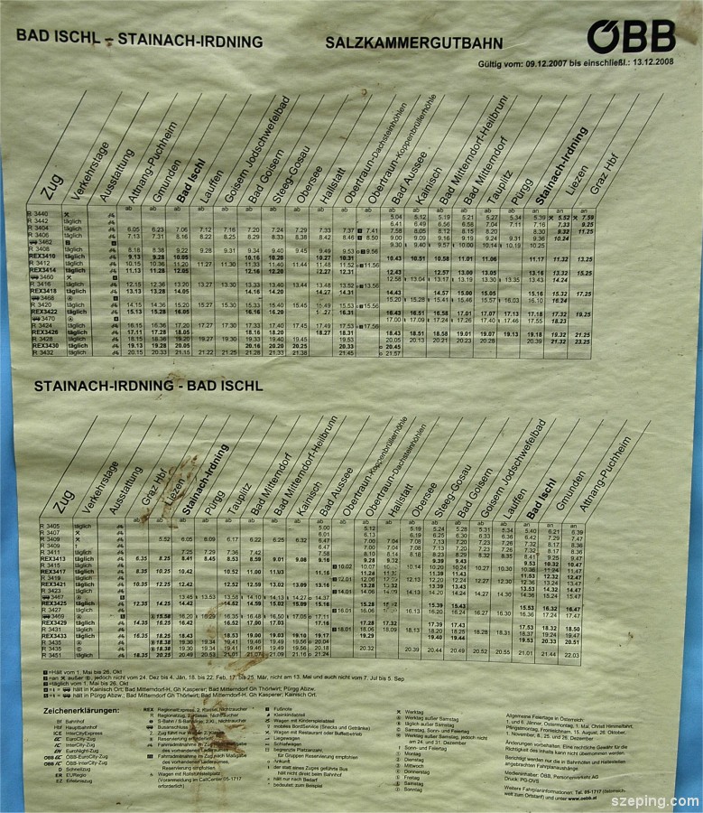 – Bad Ischl 到 Hallstatt 火车站时间表