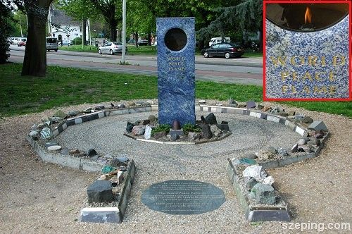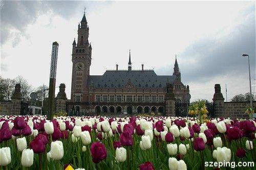 其实国际法院并非一个开放给观光客的“景点” – 它可是属于联合国司法机构的一个中心,所以闲杂人等只能在栅栏外眺望差不多一百米(我随便估计的)外的和平宫。不过不要太在意,大门旁边有一个世界和平之火(World Peace Flame):
