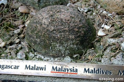 石碑内的火种可是由来自世界五大洲的火焰共同组成的哦~而围绕着此和平之火,呈钥匙孔型的世界和平之路(World Peace Pathway)则是由197粒代表世界各国的石头组成的。好奇心大起,找了马来西亚和新加坡的代表:
