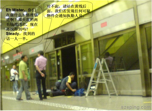 对啦,也不知道是什么东西出问题。但好像蛮危险的,也不知道等一下地铁抵达时他们就会完成任务了吗,还是在地铁里开后再继续?如果再继续的话,那就应该不是轨道的问题咯。。。在好奇心的驱使下,我东问问西问问,终于得到答案了!请看以下解答。。。