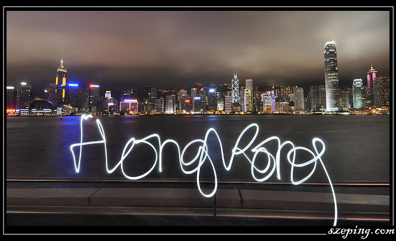 那张写着”Hong Kong”的夜景照其实只是运用了很普通的”Light Painting”(可以在谷歌寻找一些资料)。如果你了解感光器的运作原理就更简单。。。要知道此类手机灯光即使在黑暗中也已经足够在相机的感光器(sensor)留下痕迹了,但我们的人影就不同了。人影在黑暗低光中,尤其是在低 ISO 值(拉长快门就得调低 ISO 值,防止噪音)的时候是很难在 sensor 留影的,更不用说是当你在写字时的快速移动。所以呢,自己预测写好要的字体需要多少时间,再设置快门时间;然后快速“漆光”。