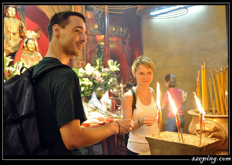 老外都“入乡随俗”地来上香。本身不知道他们的宗教信仰是什么,不过如果是非佛教徒的话就非常敬佩他们还能摊开胸怀尊敬其他宗教的神灵哦。