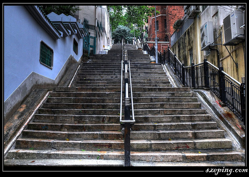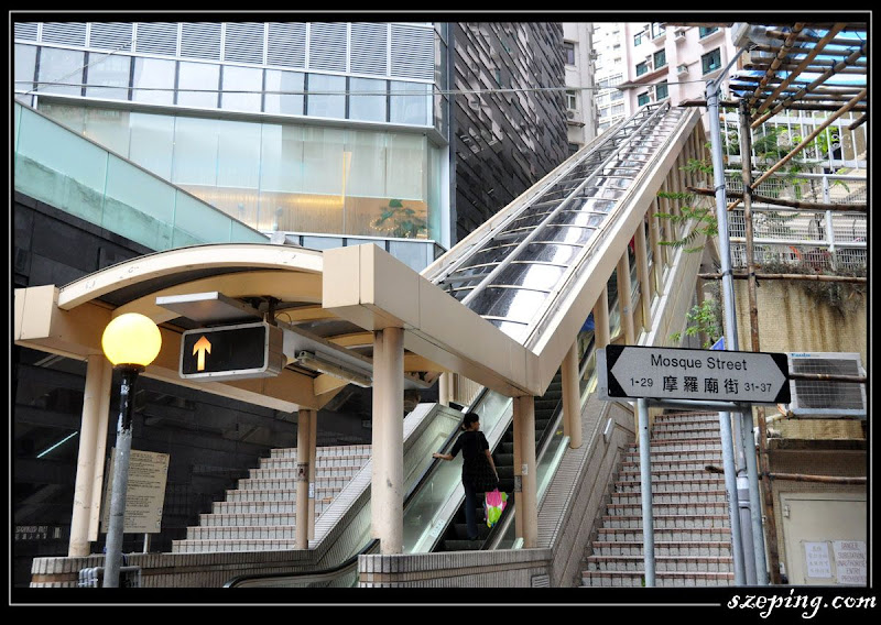 本来以为电动扶梯是直透到半山,怎知道原来全程的扶梯被分成几个小段落。而扶梯旁紧贴着一些店屋和民宅,所以大家可以大肆窥探,呵呵~哦,值得一提的是早上十点前的扶梯是往下的(方便半山居民下山上班);然后十点后才是上行。如果一路来到半山而懊恼需要步行下山时,可以考虑搭小巴(终点往右的方向有个小巴士亭)回到上环。